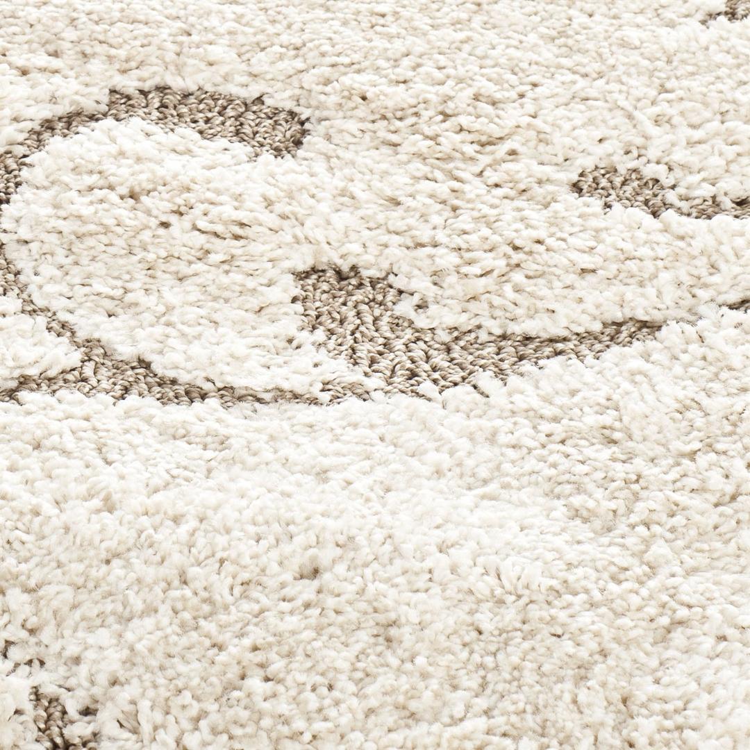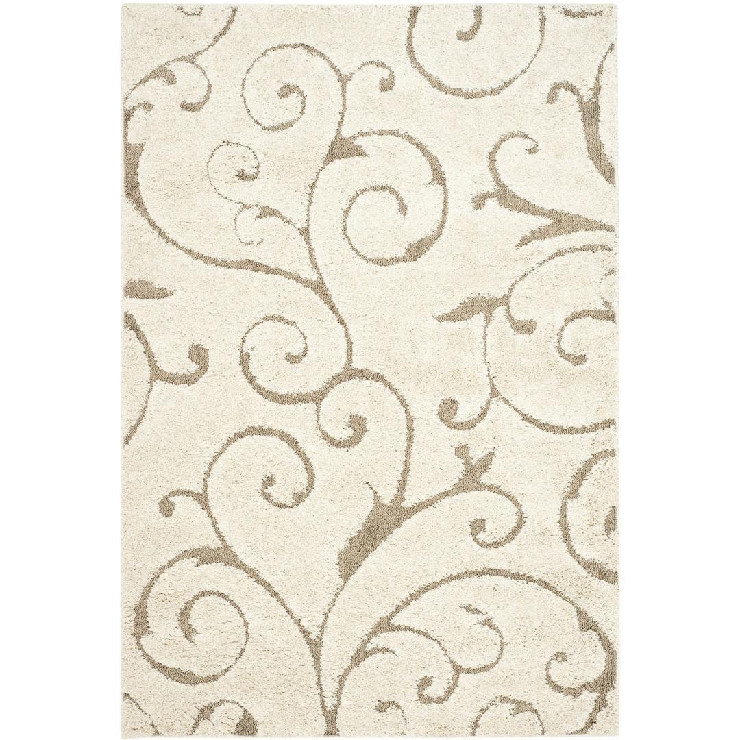 - 3'3 x 5'3 Shag Area Rug in Beige Off White with Scrolling Floral Pattern