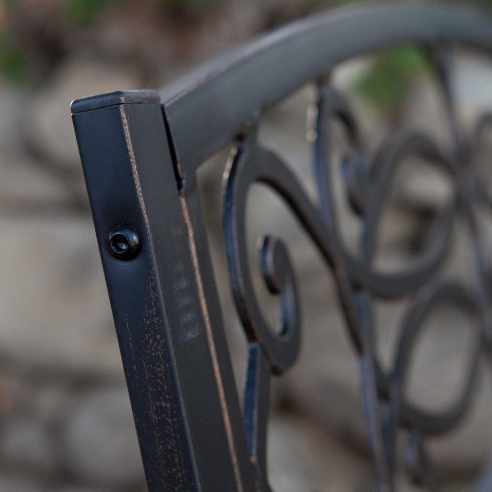 With an elegant styling that will look fabulous in any setting, this 4-Ft Metal Garden Bench in Antique Black Finish can provide a comfortable seat for two or three people. Place this beauty in your well-tended garden and take time to smell the flowers. It's made from strong tubular steel that will beautifully withstand the elements for years to come and features a comfortable contoured seat as well as flowing scroll design and bronze highlights for an antique look.