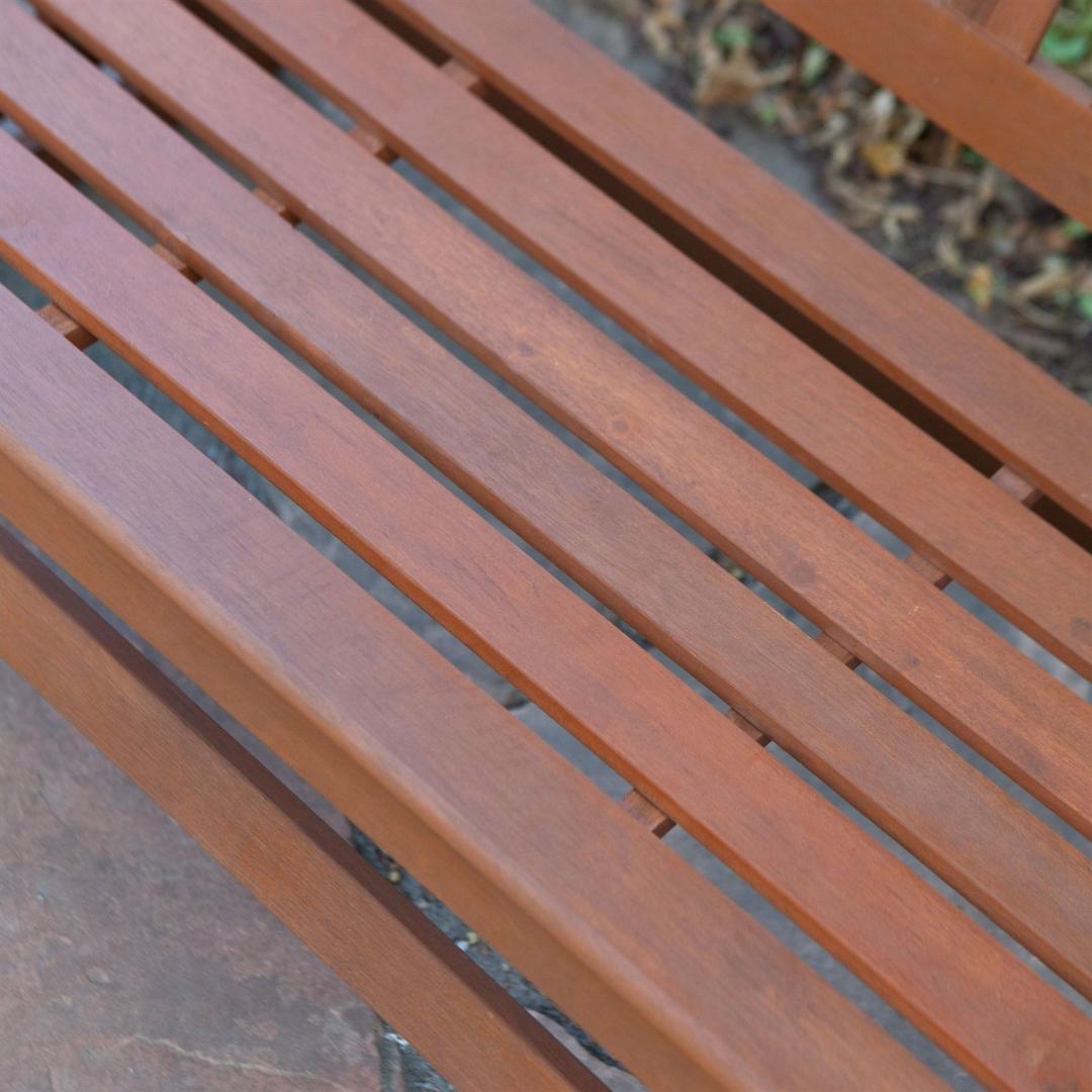 Relax in sun or shade together with a loved one on this 4-Ft Outdoor Loveseat Garden Bench Glider with Armrests in Natural Wood Finish. It is made of durable finished balau wood that looks great while maintaining its strength during repeated outdoor use. You can place it on your patio or among the flowers and trees in your garden or yard or you can enjoy sitting on it while watching a movie together in your living room. This bench features curved armrests, a slat back, and a contoured seat with a subtle divider for maximum comfort.