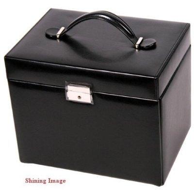 - 5-Drawer Black Leather Jewelry Box Travel Case with Key Lock