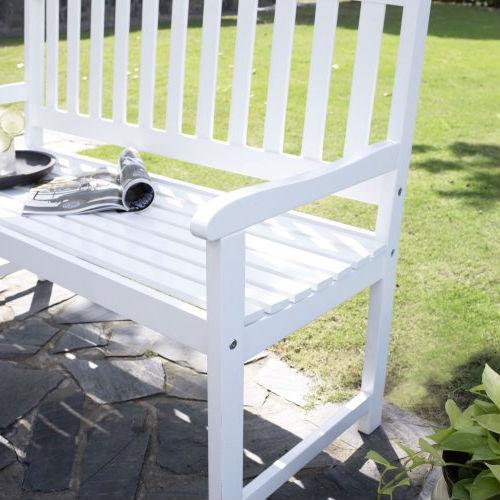 • 5-Ft Wood Garden Bench with Curved Slat Back and Armrests in White