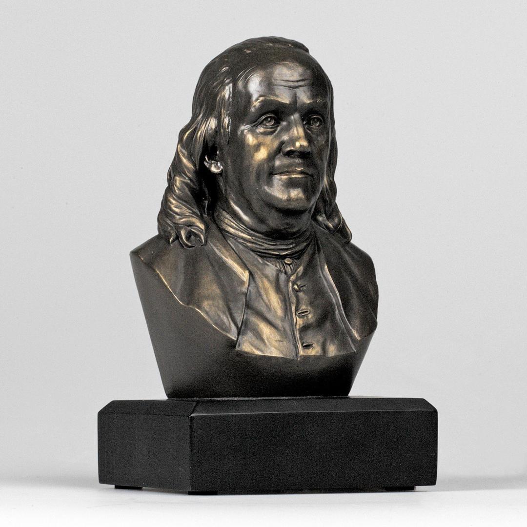 - 6-inch Ben Franklin Bronze Bust Statue - Founding Father - Great Gift