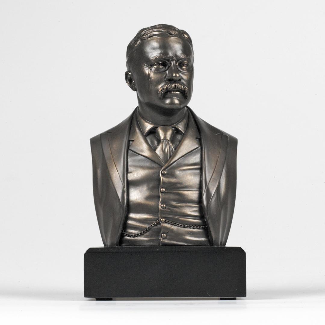 - 6-inch High Theodore Roosevelt Bust Sculpture Statue in Bronze Finish