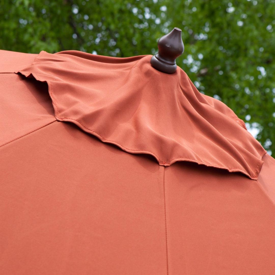 - 9-Ft Push Button Tilt Patio Umbrella with Rust Red Orange Shade and Bronze Finish Pole