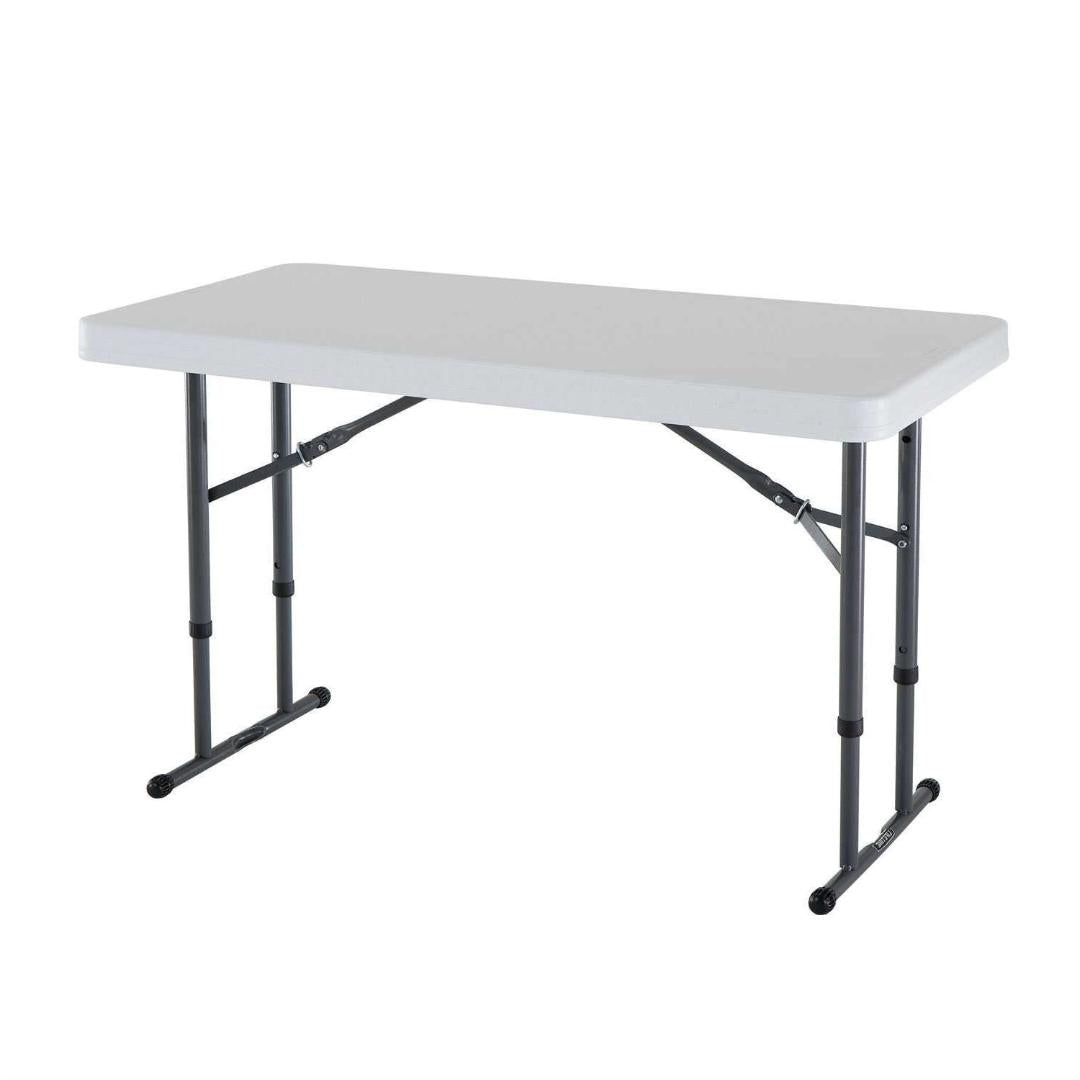 - Adjustable Height 4-Foot Commercial Folding Table with White HDPE Top