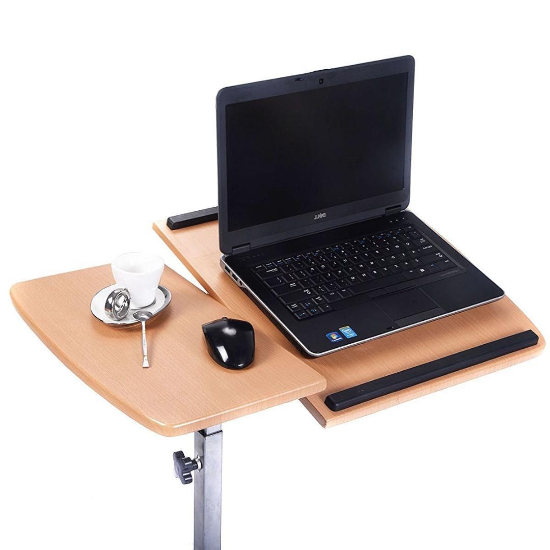 - Adjustable Height Tablet Laptop Desk TV Tray Table Mobile Swivel Cart