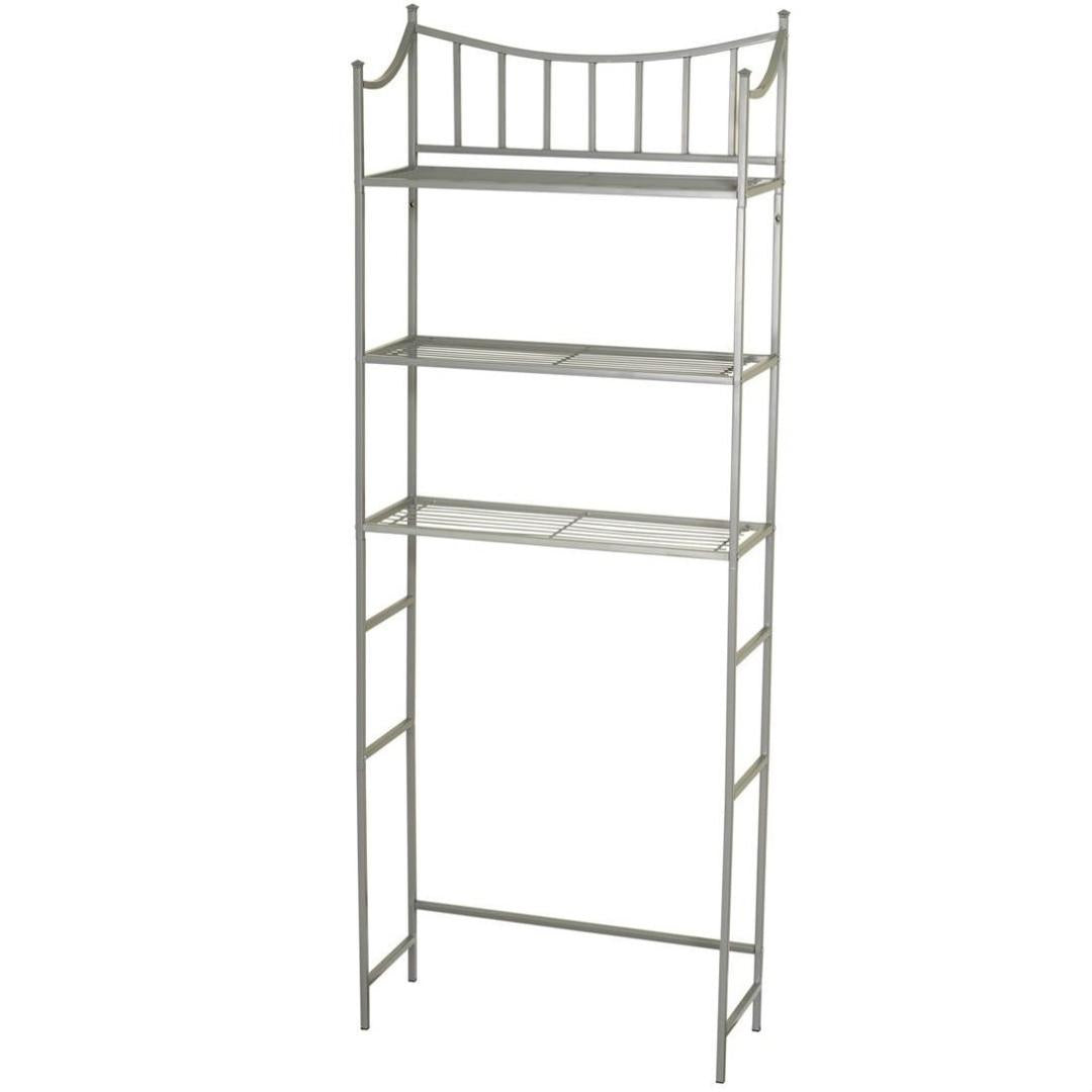 - Bathroom Space Saving Over the Toilet Linen Tower Shelving Unit in Nickel Finish