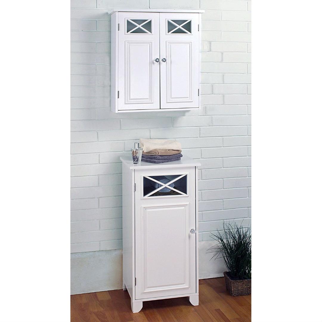 - Bathroom Wall Cabinet in White with Crisscross Pattern Window