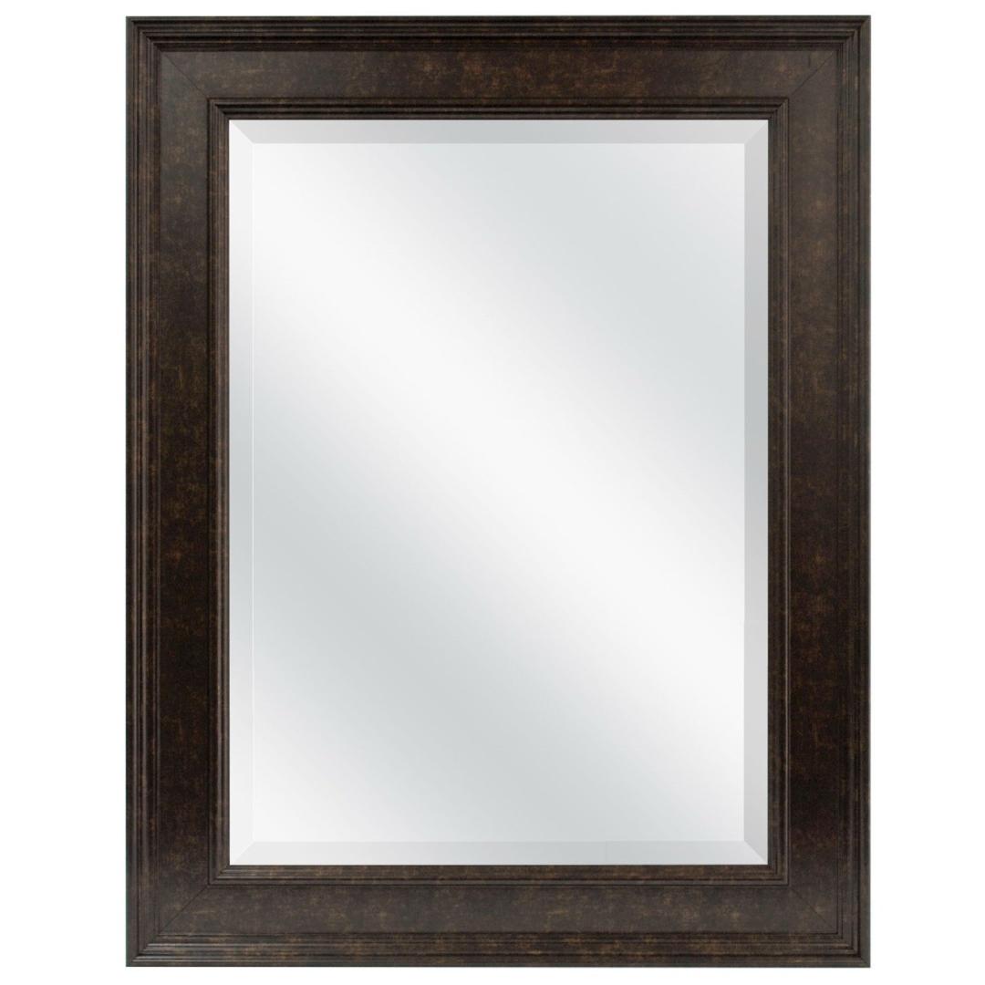 Beveled Rectangular Bathroom Vanity Mirror with Bronze Finish Frame