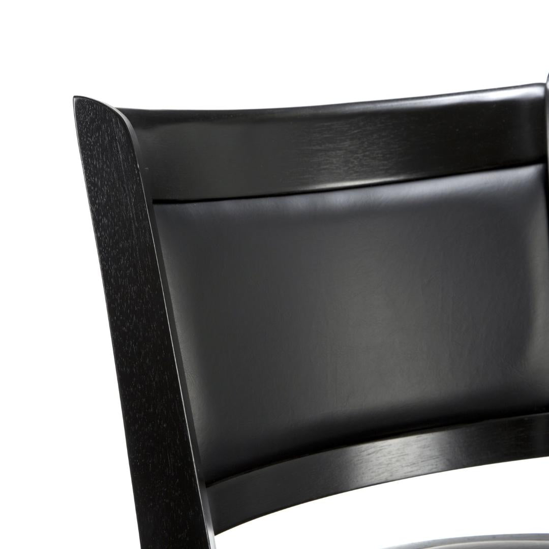 Accent your bar space with this classy and stylish Black 29-inch Swivel Seat Barstool with Faux Leather Cushion Seat. Its attractive and durable design is a perfect fit for all decor settings. It occupies less space and proves highly useful when you have guests at home.This stool has a solid hardwood construction that ensures it lasts for many years to come. The lustrous finish lends it a timeless look and adds to the appeal. It is fitted with a rich faux leather seat with high density foam to offer comfortable seating and enhance its appearance. It has flawlessly crafted French style legs with tempered bottoms. The steel ball bearings keeps it steady. The swivel ensures unrestricted movement. While the full ring footrest lends more strength and stability. The back support makes the seating experience more relaxed.The bar stool has a weight capacity of 250lbs. Its seat height is 29''. The overall dimensions of the bar stool are 43.5'' in height, 17'' in width and 18'' in depth. It is available in different shades to best suit your decor. This stool is best paired with an elegant bar table to complete the sophisticated look of your decor.