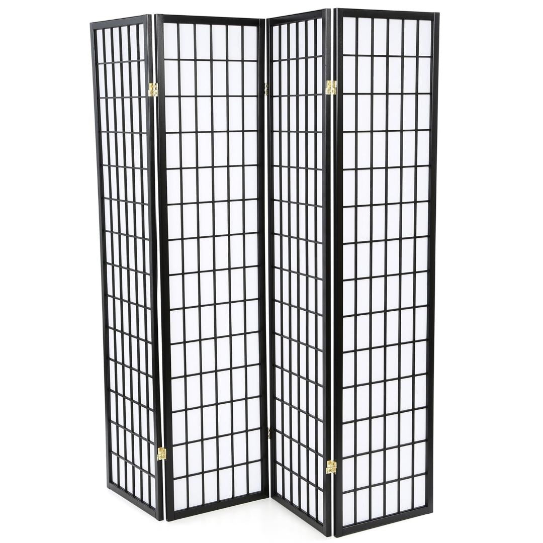 - Black 4-Panel Asian Style Shoji Room Divider Screen