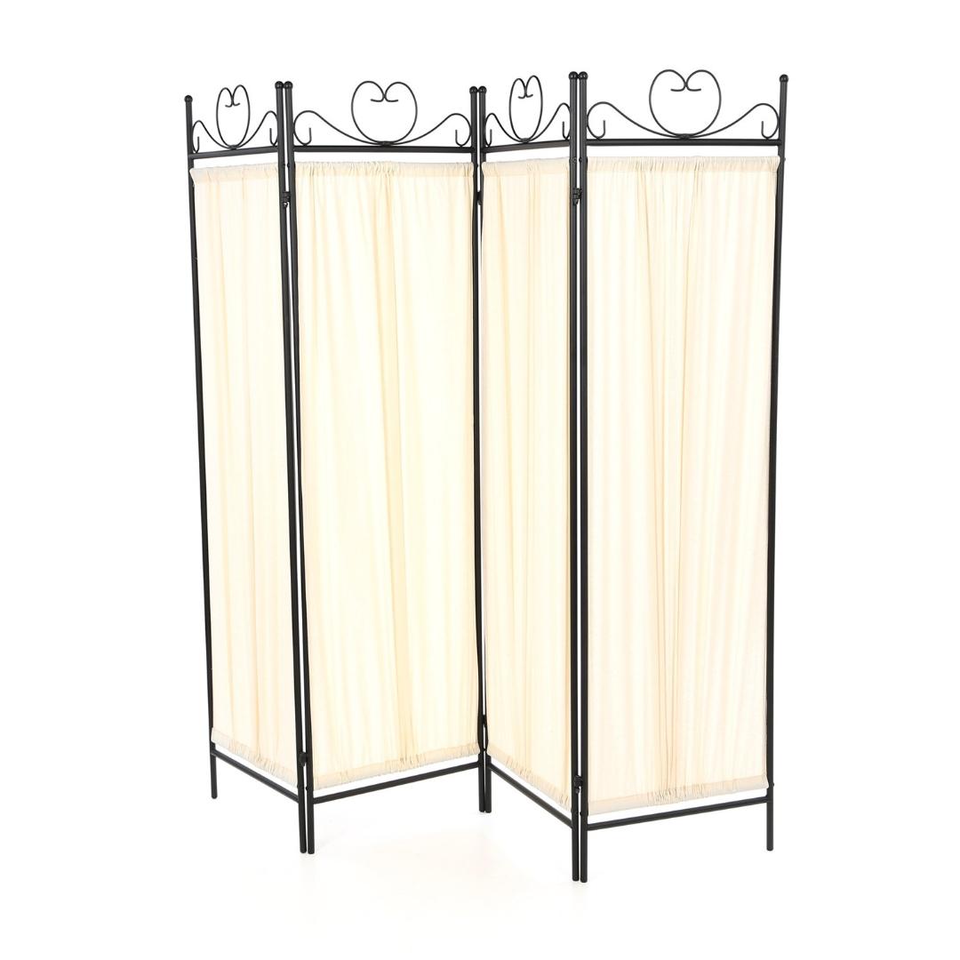 - Black Metal 4-Panel Room Divider with Off-White Fabric Screen