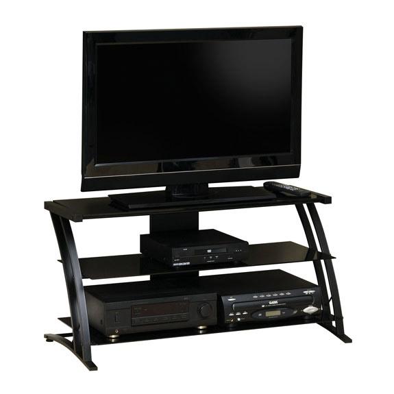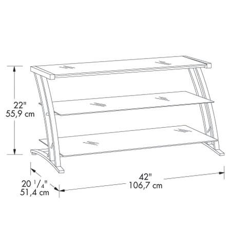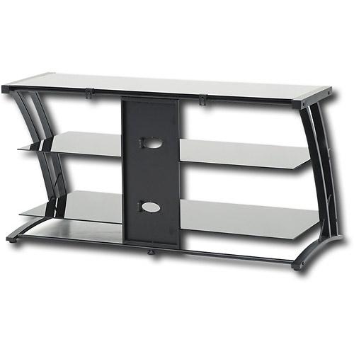This Modern Flat Screen Panel TV Stand brings class to your living room decor. This furniture piece can hold televisions weighing 70 pounds or less with bases no larger than 39 inches. The contemporary black TV stand comes with a safety-tempered glass top for added support. It also sports shelves that allow you to keep your entertainment systems and other decorative items, creating a look your friends will truly admire. Quality Steel frame construction of the TV stand ensures long term usage. The back panel of the stand features cut outs that allow easy cord access for your entertainment systems. Floor levelers are also provided with the stand to give enhanced stability and balance.