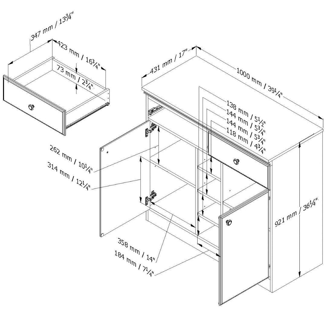 • 2 Closed storage spaces behind each door, separated by 1 adjustable shelf (can support a weight up to 15 lbs)